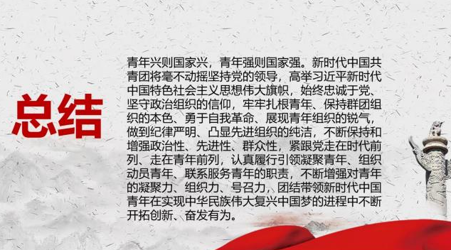 我们要紧跟祖国的步伐,做一个有国家情怀、为人民谋福利、自强不息的共青团团员,遵守团的纪律,服从团的安排,强化个人的能力,同时还要不断地向优秀的人学习,慢慢成长为一名合格且优秀的共青团团员,以迎接中国共产主义青年团成立100周年。