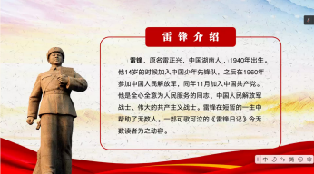 在这次的主题活动中,我们跟随着讲解的同学一起,又一次扛起了五四的大旗,回顾了人民优秀的子弟兵雷锋的故事,再一次透过那一双“大眼睛”感受到了爱意与希望。其中,让我印象最深刻的还是雷锋同志的故事。雷锋精神影响了一代又一代中国人,雷锋,早已成为了一种精神,也是时代的榜样。我们这一代青年是听着雷锋同志的故事长大的,现在,我们也长成了和故事里的英雄一般年龄的青年。一代人有一代人的使命,一代人有一代人的长征,且向前吧,愿我们回首之时,都是历史上的一颗螺丝钉。