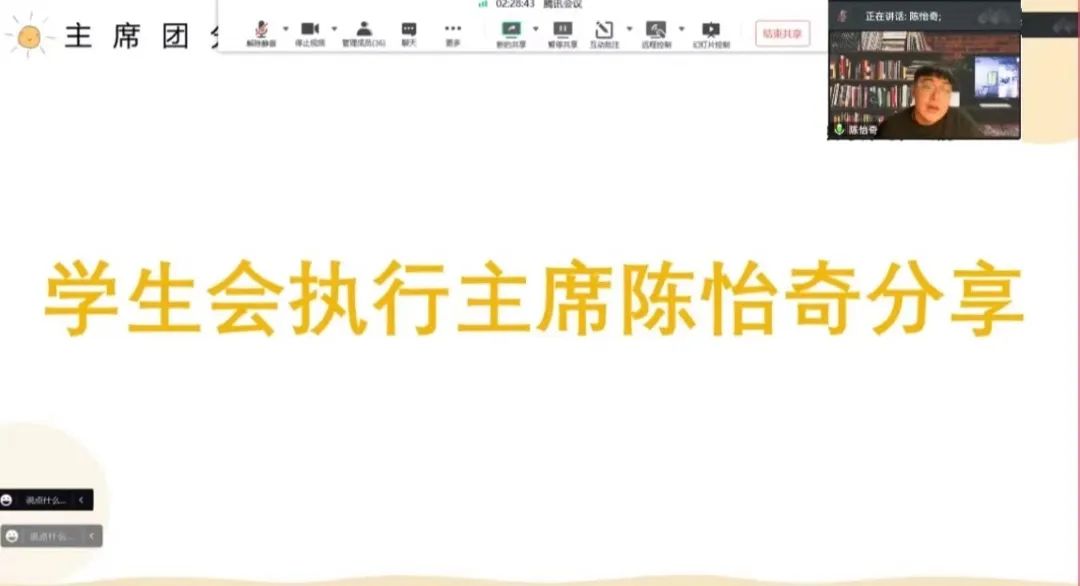 答疑环节结束后,执行主席陈怡奇进一步分享了他在团学组织工作的切身感受与体会,为干事们送上了自己的寄语与祝福。