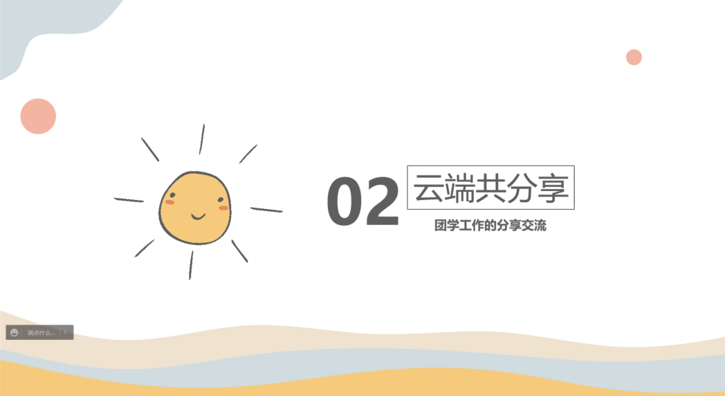 在云端分享的过程中,干事们的发言内容丰富,风格多样,情感深厚,让人印象深刻。其中“收获”与“感谢”是分享中的两大关键词,这充分体现了干事们在工作、学习等方面取得进步的欣喜,表达了能够进入教育学院团学大家庭的荣幸,和对老师、学长学姐所给予的帮助与包容的感谢。每个人短短几分钟的发言中,无不蕴含着对教育学院团学大家庭无限的热爱,充分体现了教育学院团学一家亲的温暖氛围。