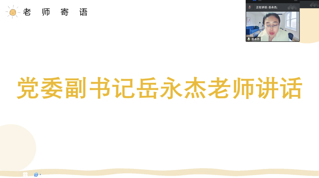 观看完部长们的寄语视频后,一直以来关心干事们成长的三位老师——党委副书记岳永杰老师、团委书记王小婉老师、辅导员杨湜汀老师也为团学的各位干事们分别送上自己的寄语。