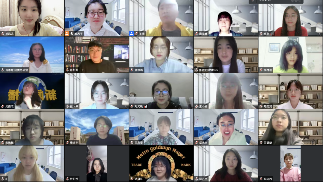 第一,希望大家可以在课余时间培养自身的兴趣爱好。做自己想做的事情,将爱好变为特长,不断突破自己,发展自己。第二,希望大家能够将目光放得更加长远。当干事们出现失意、迷茫的情况时,不要悲伤或怀疑自己,人的发展是多维度的,人生的路也很长,不要总纠结于眼前的利益,要将目光放长远,做最好的自己,走好自己的长征路。第三,希望居家学习的干事们多帮父母做一些家务。我们每个人都应该懂得孝敬父母,与家人和谐相处,常怀感恩之心。第四,希望大家能够多读书、多看报。他生动地说道:“秋刀鱼会过期,肉酱也会过期,但是青年对于国家的爱是永远不会过期的。”以此激励干事们以真才实学报效国家,为国家为人民奉献自己。