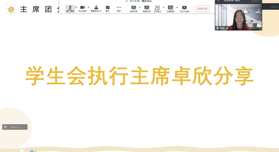 在本环节的最后,执行主席卓欣也向大家分享了自己在团学组织任职三年以来的一些收获与心得。