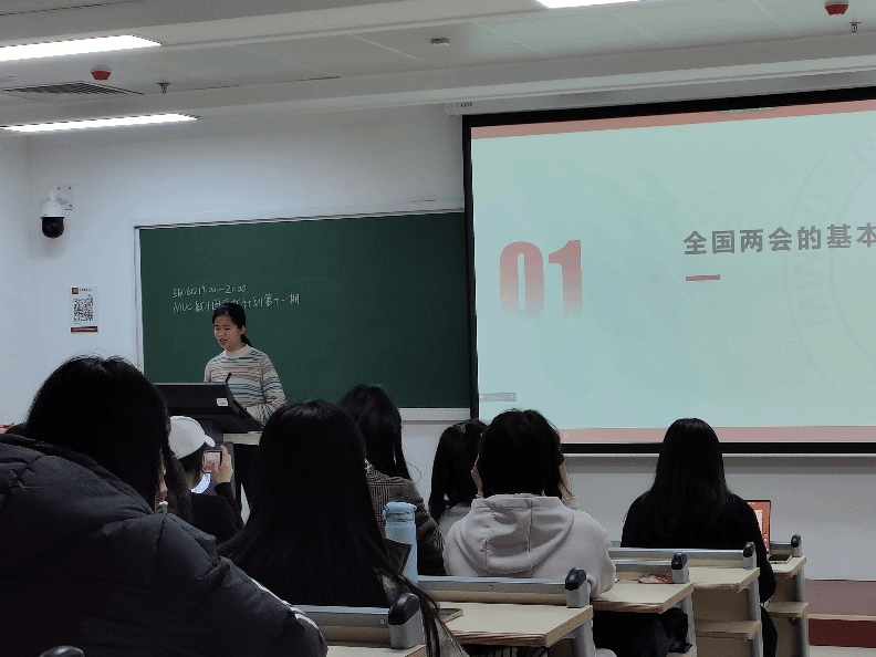 首先,主持人董鑫带领大家观看了介绍全国人民代表大会和中国人民政治协商会议基本信息的视频,团学成员学习了两会召开的时间、两会的职权以及两会的组成成员等相关知识。全国两会是中国政治生活中的一件大事,也是深入了解中国式现代化道路、关注中国未来发展的重要窗口。青年学生干部应该关注国家政治生活,对两会的重要性有深刻清晰的认识。为了进一步巩固学习成果,主持人进行了现场互动,就视频相关内容开展了问答环节。团学成员认真学习两会知识,积极主动回答问题,现场互动效果良好,回答测试题的正确率为100%,充分展现了教育学院团学成员扎实的政治素养。