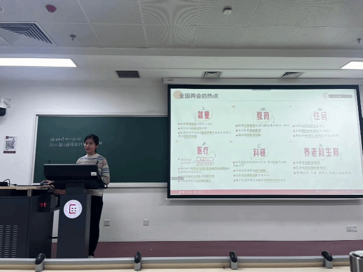 在第二部分,主持人就2023年两会的讨论焦点、部分议员提出的热点问题以及国务院总理李强与中外记者的十问十答带领团学成员进一步展开学习。