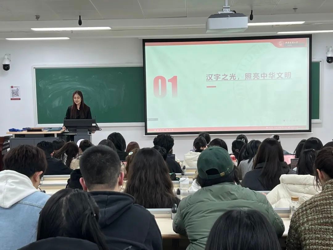 主持人带领大家观看了介绍中国汉字的视频。汉字是中华文化的根脉,充分认识汉字的历史和文化意义,对于中华民族的凝聚和中华文化的传播具有重要意义。团学成员认真学习汉字的有关知识,积极参与互动。