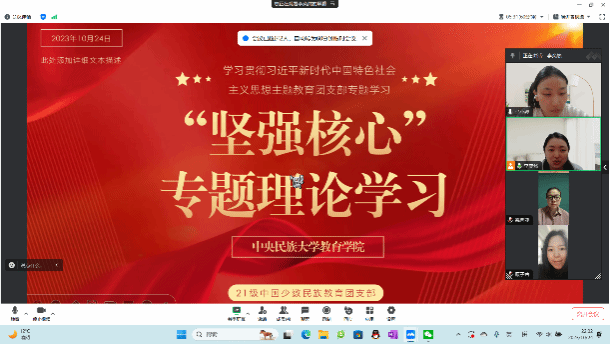 为深入学习贯彻习近平新时代中国特色社会主义思想,深刻领悟“两个确立”的决定性意义,增强“四个意识”、坚定“四个自信”、做到“两个维护”,引导广大团员和青年坚定不移听党话、跟党走,自觉做习近平新时代中国特色社会主义思想的坚定信仰者、积极传播者、忠实实践者,持续推进学习教育活动走深走实,教育学院各级团支部组织开展了“坚强核心”专题学习会。