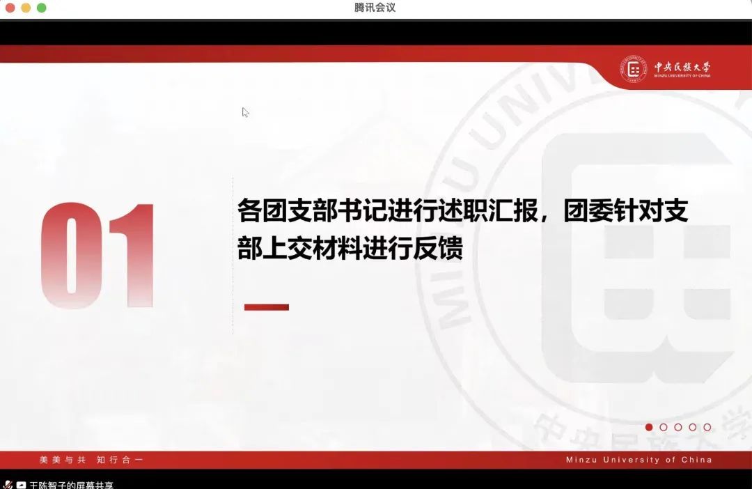 首先,杨湜汀老师对团支部书记和团委工作人员的辛苦付出表示肯定和感谢,同时建议各团支部书记统一述职报告格式,提升行文严谨度,从而更为全面、清晰地展示团支部的工作情况,确保工作规范。