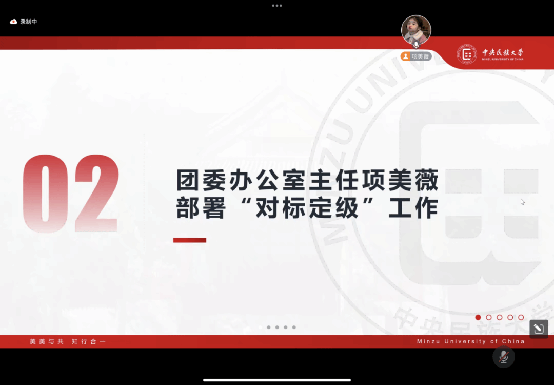 团委书记王小婉老师作开场发言,指导“对标定级”工作并强调注意事项。王小婉老师强调了“对标定级”工作的重要性,要求教育学院团委、各团支部严格按照程序开展“对标定级”工作,同时敦促各团支部要做好会议记录、明确相关要求、提高工作认识、及时沟通解惑,以此确保各项工作的顺利开展。最后,王小婉老师还表示团干部是应对急难险重工作的最有战斗力的队伍,希望各团支书与团委成员通力合作、共同进步,完成好团委布置的任务,实现好团组织的发展目标。